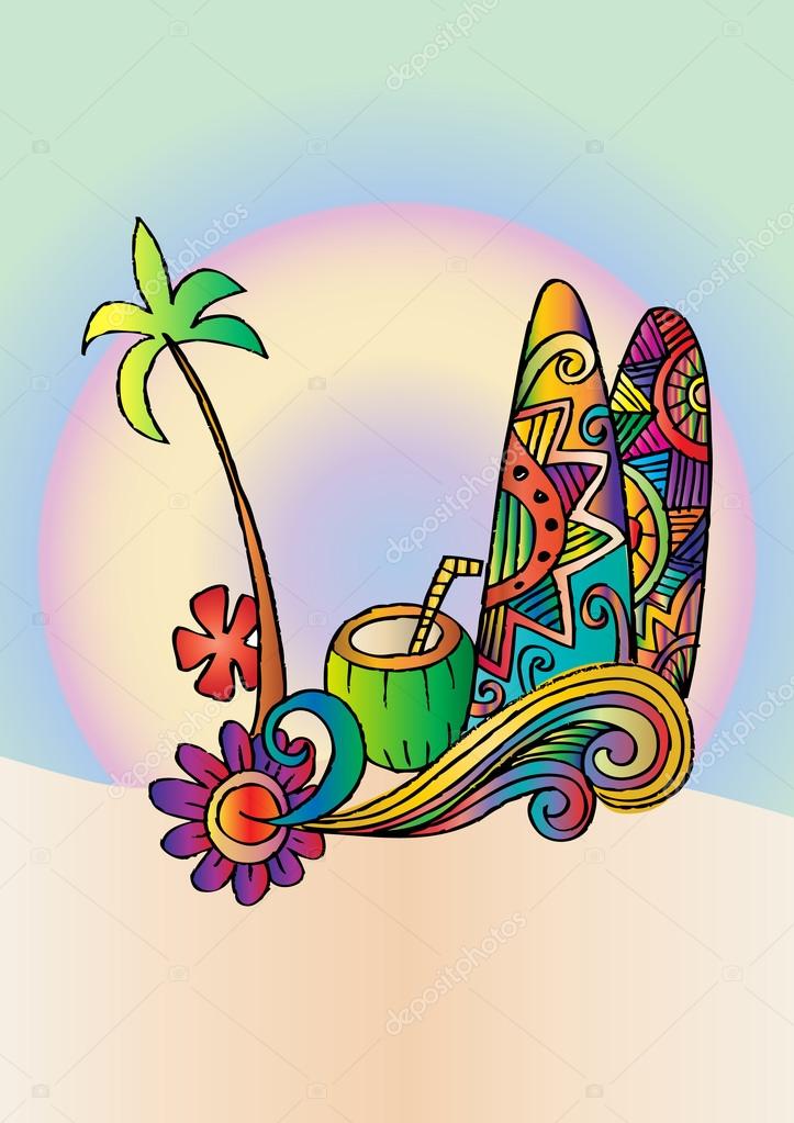 Surf Disegno Surf Vettore Sopra Illustrazione Fondo Disegno Beachscape Canstock
