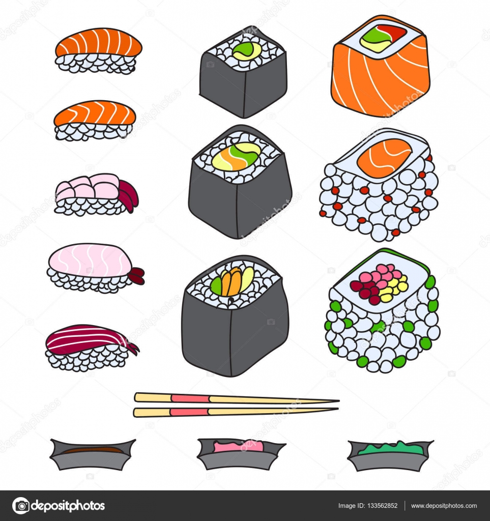 Colored Sushi Sketches A Vector Set Of Food Icons Japanese Cuisine Canstock