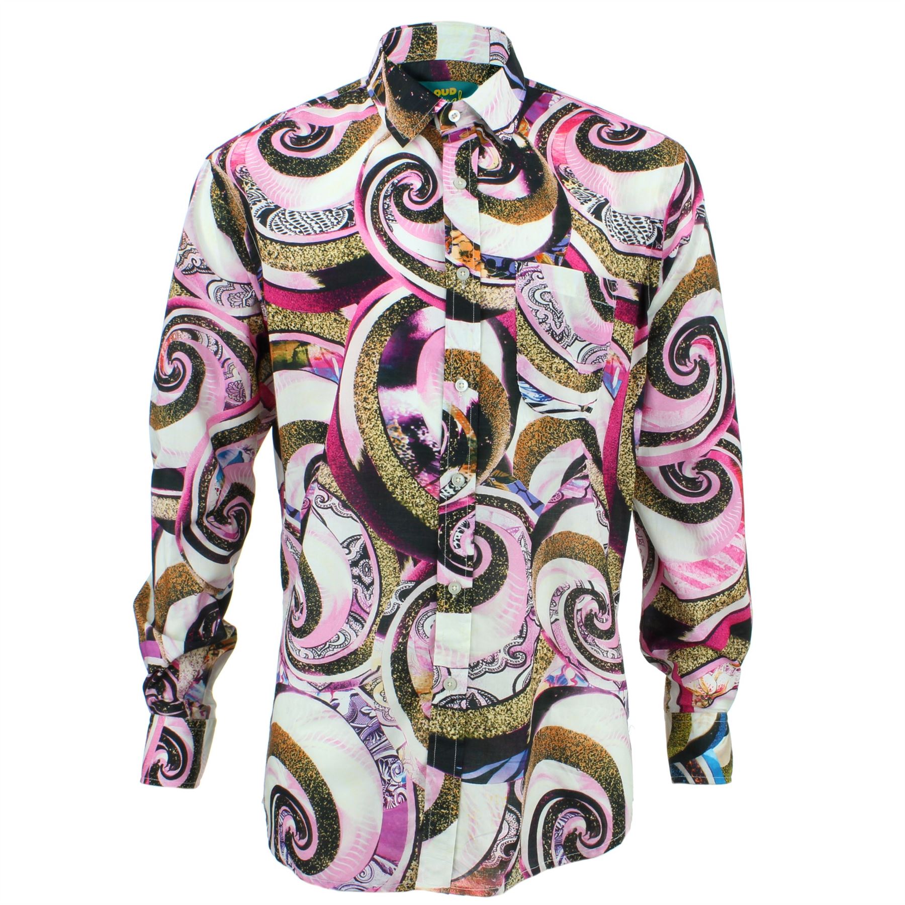 Men S Loud Shirt Regular Fit Swirls Pink Retro Psychedelic Fancy Ebay