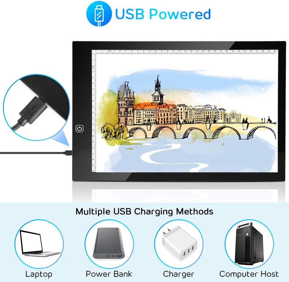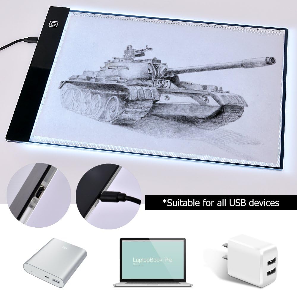 Tavolo Luminosa Usb A4 Molto Sottile Portatile Pad Leggero Per Bambini E Artista Adulto Waroomss Tablet Luminosa Per Il Disegno Per Praticare Il Disegno Di Copia Di Calligrafia Nero Cable Usb A4