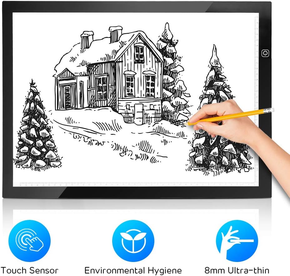 Ejoyous Tavoletta Luminosa A3 Tablet Per Schizzi A Led Con Borsa E 10 Fogli Di Carta 8mm Ultrasottile Pulsante A Sfioramento Funzione Di Memoria Per Disegnare Schizzo Architettura Calligrafia