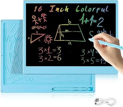 Bhdlovely 16 Pollici Lcd Scrittura Tablet Con Disegno Aritmetico Ricaricabile Usb E Lavagna A Colori Per Bambini Ragazzi Ragazze Bambini Blu Amazon It Cancelleria E Prodotti Per Ufficio