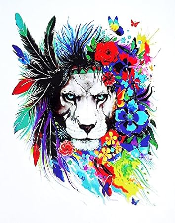 Tattoo Leone Leone Adesivo Da Parete Con Piume Fiori Parati Arm Tattoo Tatuaggio Falso A065 Amazon It Bellezza