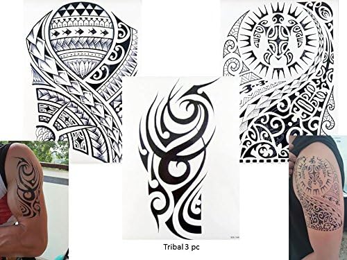 Tatuaggi Tribali Temporanei Adesivi Colore Nero 3 Fogli Per Braccia Amazon It Bellezza