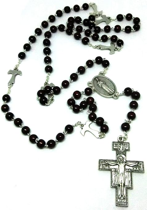 Gtbitaly Ros02 6l Rosario Marrone Francescano Con Tau 70 9 Grani Croce Medaglia Crocera San Fracesco E Scritta Ruega Por Nosotros Amazon It Casa E Cucina
