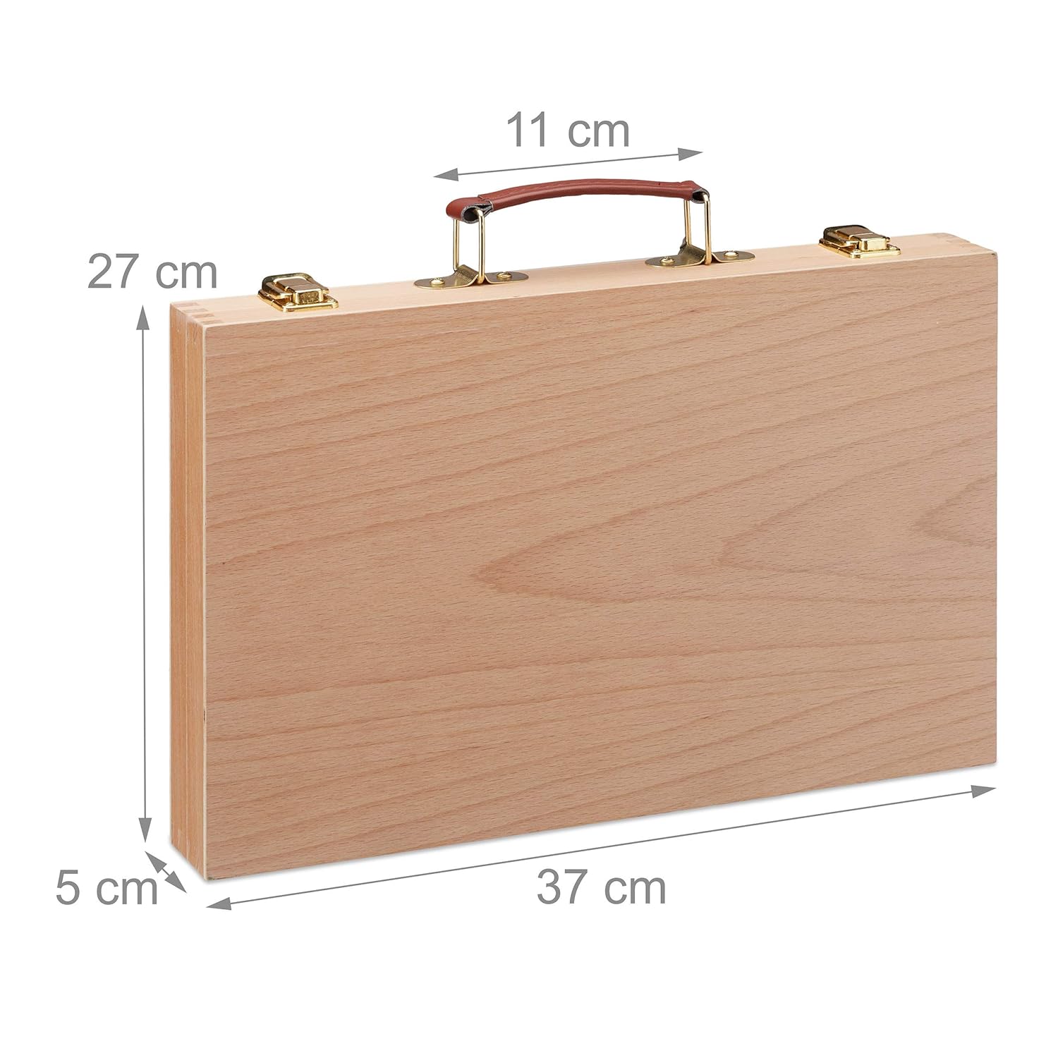 Relaxdays Valigetta Con Kit Da Pittura E Disegno Set Da 56 Pezzi Legno Naturale Matite Gomma Temperino Colori Acrilici 27 X 37 X 5 Cm Casa E Cucina Hobby Creativi