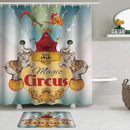 Set Di Tende Per Doccia Con Tappeti Antiscivolo Acrobata Di Stile Vintage Dell Aerografo Di Annuncio Di Annuncio Della Tenda Del Circo Magico Con 12 Ganci Amazon It Casa E Cucina
