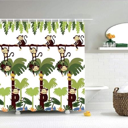 Xialeine Tenda Da Doccia 180 180cm Disegni Divertenti E Colorati Tenda Da Doccia Per Bambini In Tessuto Con Mappa Del Mondo Degli Animali Dei Cartoni Animati Amazon It Casa E Cucina