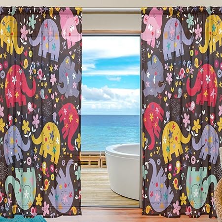 Doshine Tenda Velata Con Disegni Di Animali Elefante Fiori Drappeggi Tenda Per Finestra Per Ragazzi E