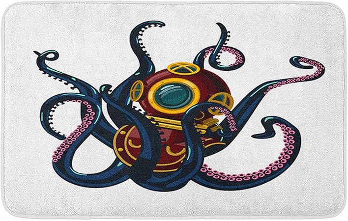 Liminiaos Tappetino Da Bagno Muta Da Sub Vintage Con Casco Da Sub Polpo E Tentacoli Stile Tatuaggio Disegno Accogliente Bagno Decor Tappetino Da Bagno Con Supporto Antiscivolo Amazon It Casa E Cucina