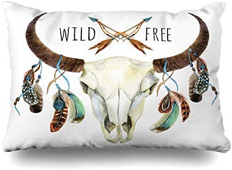 Federa Per Cuscino Con Disegno Ad Acquerello Con Teschio Di Mucca Piume Di Bufalo Alce Fauna Selvatica Scheletro Bohemien Cervo 40 X 60 Cm Ideale Come Regalo Di Natale O Di Compleanno