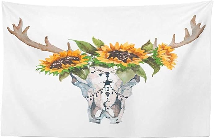 Arazzo Da Parete Con Teschio Di Mucca Bohemien Arazzo Appeso A Parete Testa Ad Acquerello Con