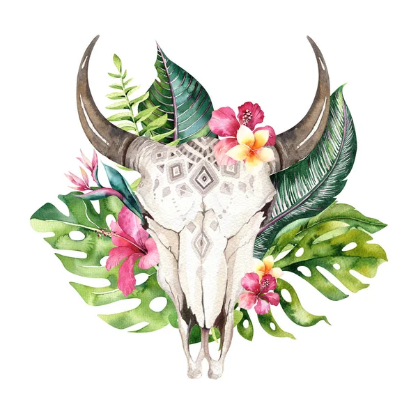 Quadro Su Tela Teschio Di Mucca Bohemien Acquerello Mammiferi Occidentali Hip Acquerello Pixers Viviamo Per Il Cambiamento