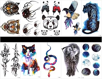 Interookie 10 Tatuaggi Finti Tatuaggi Temporanei Con Tigre Ragno In Un Unico Pacchetto Disegni Misti Come Spada Gatto Serpente Testa Di Tigre Ragno Orso Aquila Tigre Teschio Terra Ecc Amazon It Bellezza