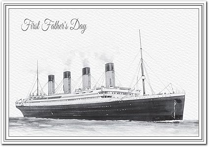 First Fathers Day Card Send Your Love Good Wishes And Traditional Greetings Unique Elegant High Quality Printing Of Handrawn Titanic Ship Vintage Design Boat Drawing Amazon Co Uk Office Products