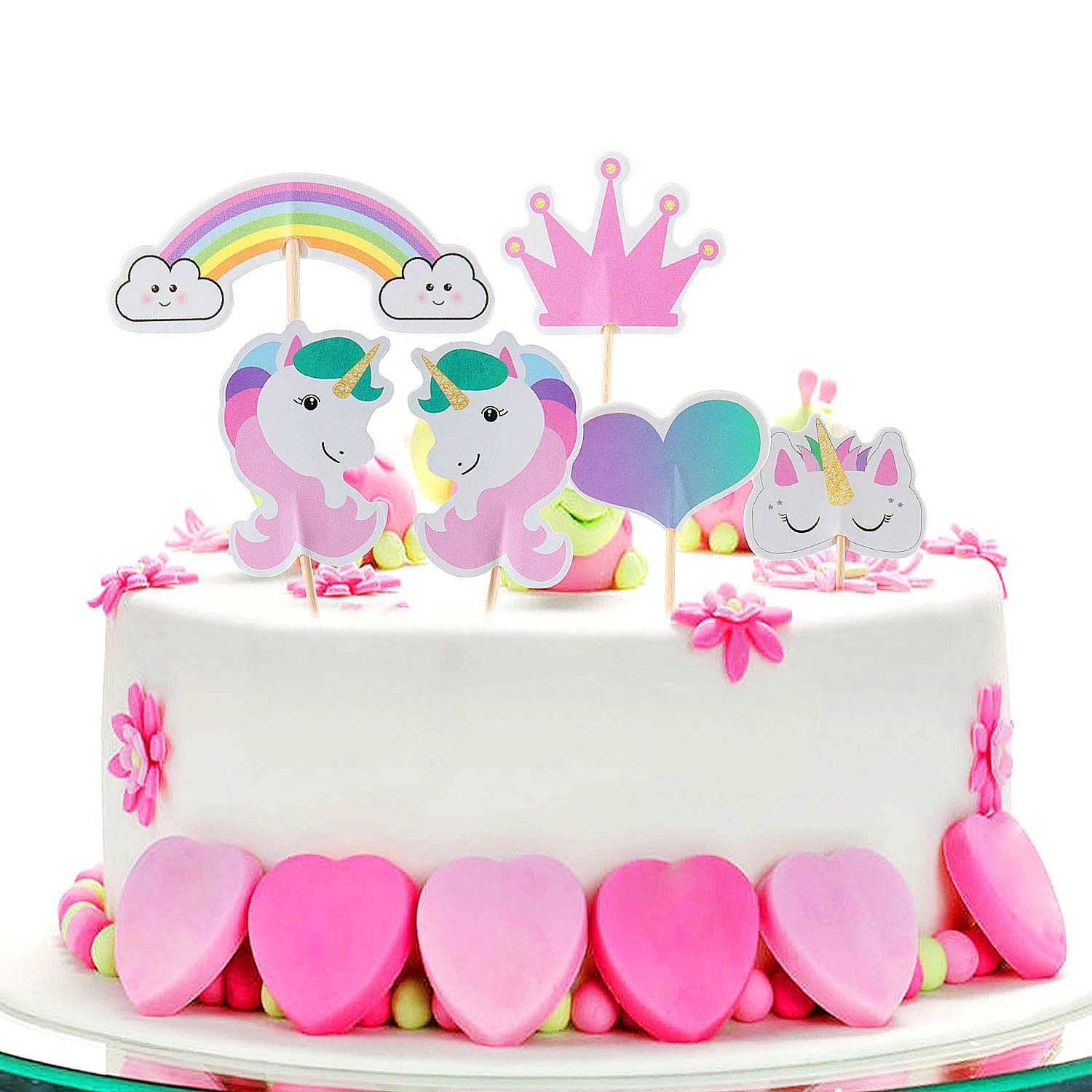 48 Pezzi Arcobaleno Cuore Corona Torta Topper Per Festa A Tema E Compleanno Torta Decorazione Zewoo Unicorno Cupcake Topper Utensili Da Cucina Casa E Cucina