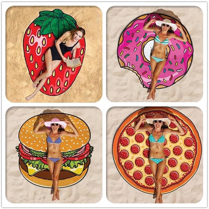 Laikete Coperta Rotonda Asciugamano Da Spiaggia Tovaglia Da Picnic Con Fantasie Divertenti Colorate Humburger Pizza Donut Ciambella Beach Towel Bikini Cover Up Beachwear Meditation Yoga Mat Biancheria Da Bagno Bagno