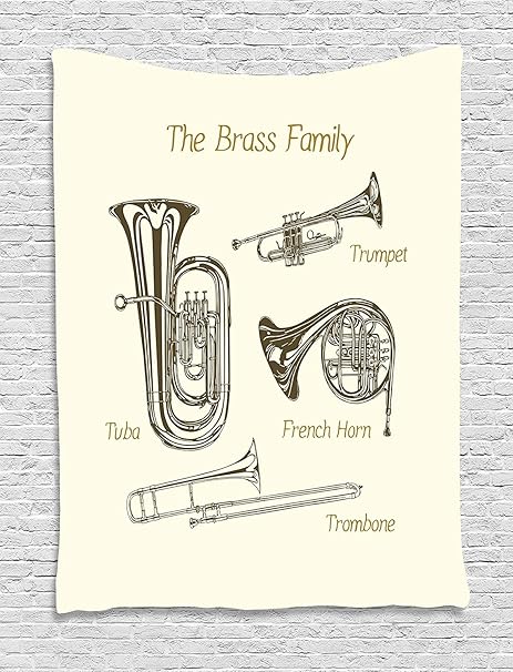 Sodika Music Tapestry Brass Family Instruments Drawing Of Tuba Trumpet Trombone And French Horn Decorative Tapestry For Bedroom Dorm Decor 60 W X 80 L Inches Army Green Ivory Khaki Amazon Co Uk Kitchen
