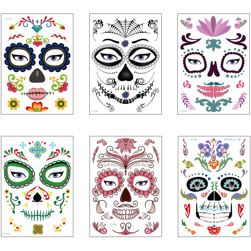 Acquista Temporary Viso Halloween Tattoo Fancy Spoof Trucco Sfera Di Travestimento Partito Di Dancing Cranio Di Disegno Del Ragno Fiore Corpo Della Decalcomania Tatuaggio Del Paster Sticker A 0 74 Dal Homimly