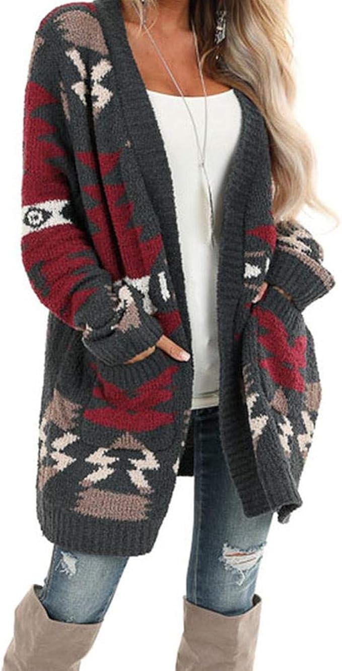 Donna Maglieria Disegno Geometrico Con Tasca Lunga Knit Cardigan Morbido E Caldo Nervata In Maglia Maglione Top Grigio 2xl Amazon It Abbigliamento