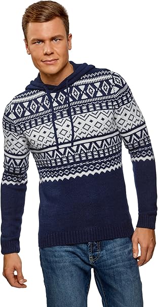 Oodji Ultra Uomo Maglione In Tessuto Strutturato Con Motivi Geometrici Abbigliamento Sportivo Felpe