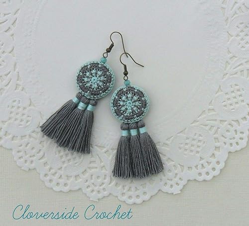 Orecchini Pendenti Con Nappine E Disegno Etnico All Uncinetto Amazon It Handmade