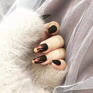 Qulin Unghie Finte Modello Di Fuoco Opaco Unghie Finte Con Disegni Nero Scuro Pre Design Corto Testa Rotonda Premere Su Unghie Lotto Arte Con Colla Amazon It Bellezza