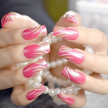 24 Pcs Kit A Spillo Unghie Finte Con Disegni Faux Ongles Della Copertura Completa Di Luce Medio Rosa Unghie Finte Punte Artificiali F054 23p Fake Nails Fake Nails Designdesign Fake Nails Aliexpress