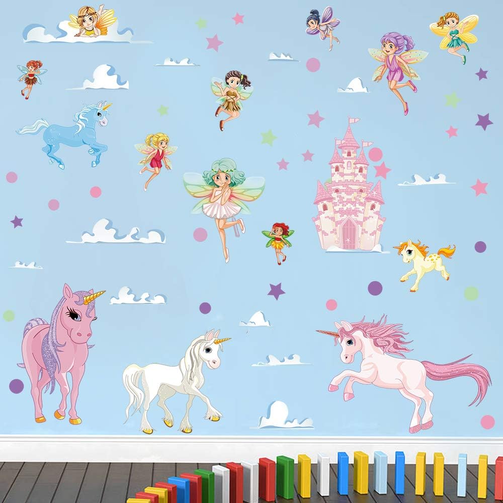 Decalmile Adesivi Murali Unicorno Colorato Adesivi Da Parete Fata Castello Decorazione Murale Camerette Bambini Camere Ragazze Camera Da Letto Asilo Nido Camera Da Letto Amazon It Casa E Cucina