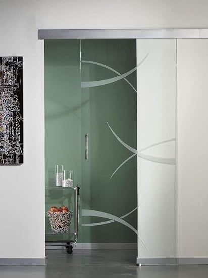 Porta Scorrevole Scomparsa In Vetro Satinato Con Disegno 90x210 Destra Amazon It Fai Da Te