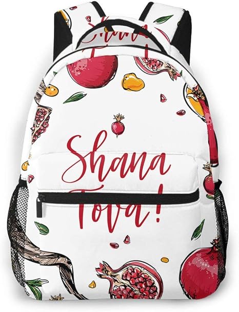 Zaino Casual Melograno Rosh Hashanah Shana Tova Word Honey Shofar Horn Leaf Zaino Scolastico Disegnato A Mano Zaino Da Viaggio Con Tasche Laterali Per Bottiglia Amazon It Valigeria