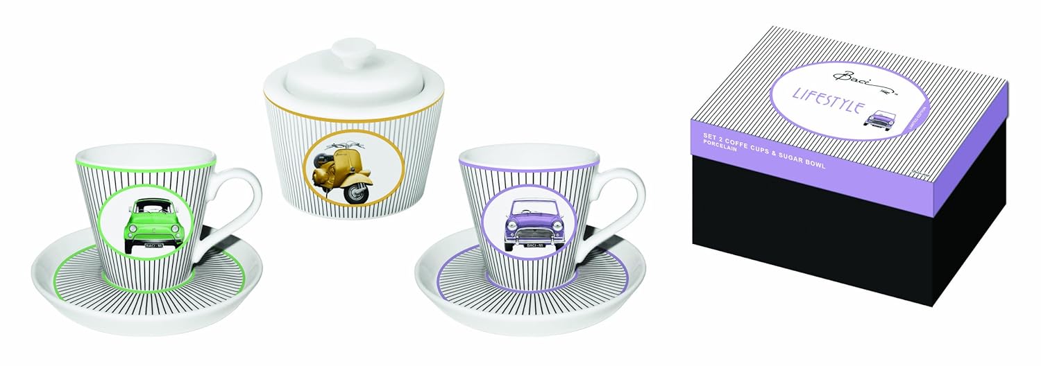 Set Da 2 Tazzine Da Caffe Con Piattini E Zuccheriera Baci Milano Disegno Di Automobili Stoviglie Casa E Cucina