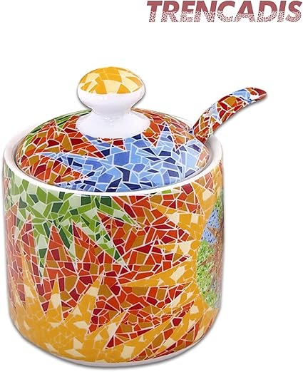 Zuccheriera In Ceramica Con Cucchiaio Disegno Modernista Ispirato Alla Tecnica Di Trencadis Misure 9 X 7 5 Cm Gaudi Collezione Amazon It Casa E Cucina