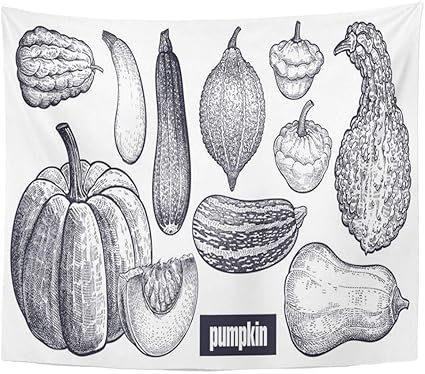 Emvency Arazzo Vari Di Zucca Chayote Squash Zucchini Hubbard Bush Crookneck Butternut Mano Disegno Nero E Bianco Vintage Decor Wall Hanging Lenzuolo Coperta Da Picnic 203 2 X 152 4 Cm 60x50 Inches Amazon It