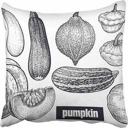 Emvency Vari Di Zucca Chayote Squash Zucchini Hubbard Bush Crookneck Butternut Mano Disegno Nero E Bianco Federa 50 8 X 50 8 Cm Federa Decorativi Di Due Laterali Amazon It Casa E Cucina